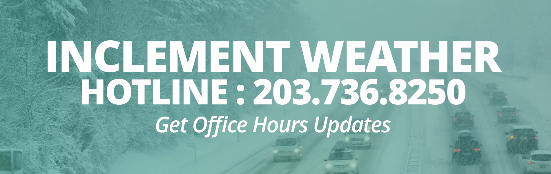 Your health and safety are our top priorities. In the event of inclement weather, our hours of operation may change. For the most up-to-date information, please call our weather update line at 203-736-8250 before heading out.